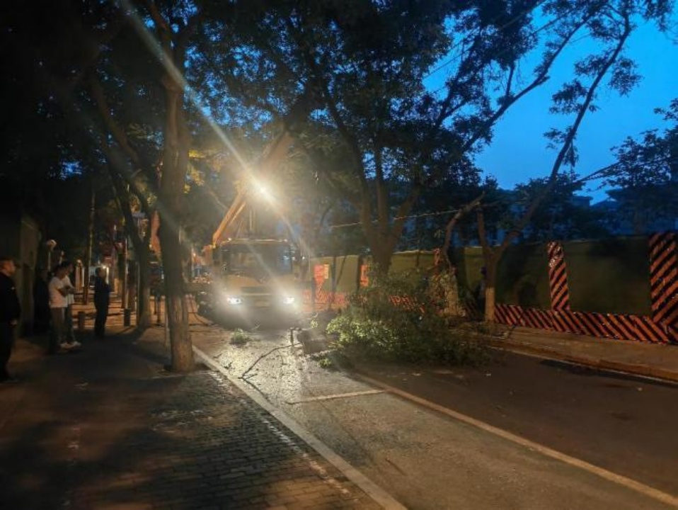 区城管委协调区应急办、区交通支队、区公安分局、丰台街道及区供电公司相关工作人员及时赶赴现场,开展应急抢修工作、制定施工方案、估算停电影响、维护现场秩序。