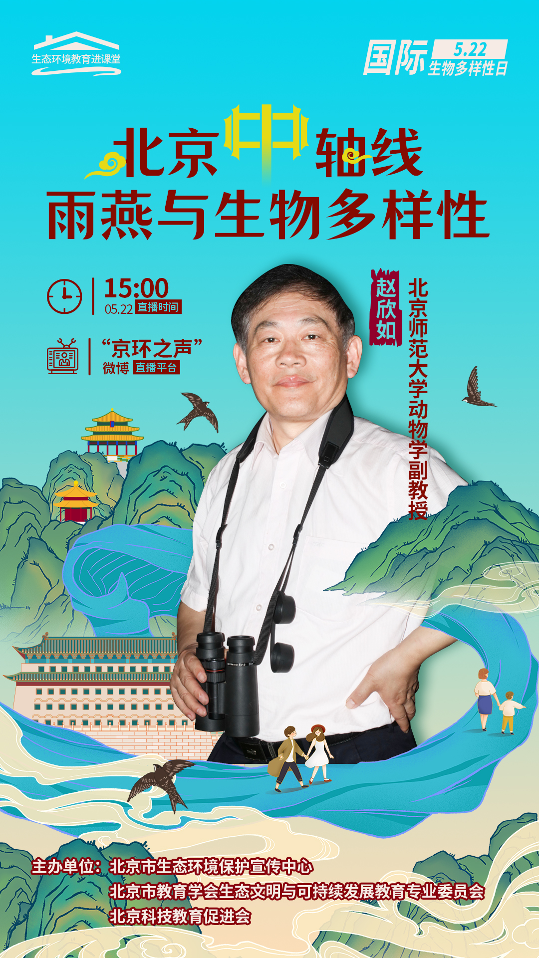 5月22日,国际生物多样性日来临之际,让我们跟随北京师范大学动物学副教授赵欣如老师的脚步,聆听北京雨燕之趣,了解它与北京的深厚之缘,共同领略壮美中轴线上蕴含的生物多样性魅力。