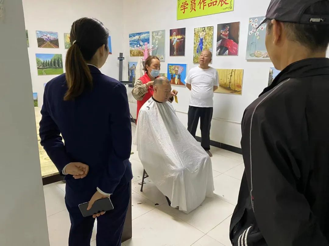 活动现场,磨刀老工匠、义务理发师、社区志愿者等早早就在现场做好准备,居民们根据现场工作人员们的引导,在理发区域和磨刀区域依次排队坐好,与街坊四邻唠起家常。