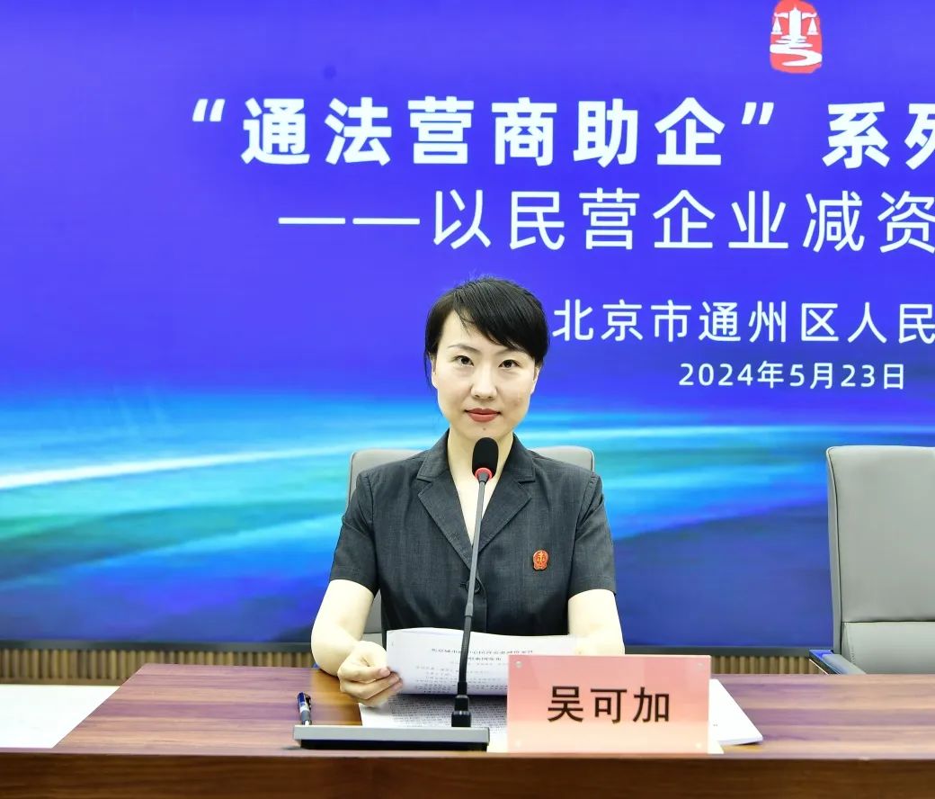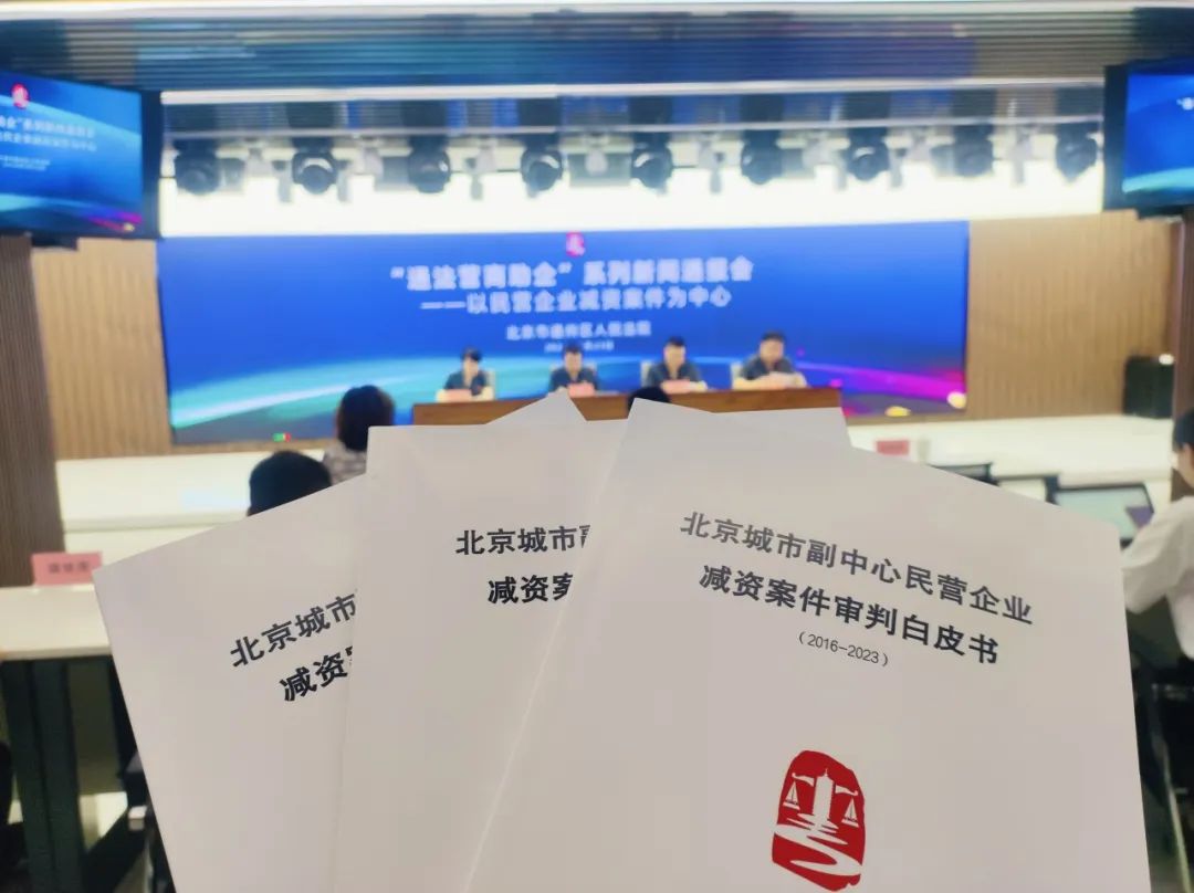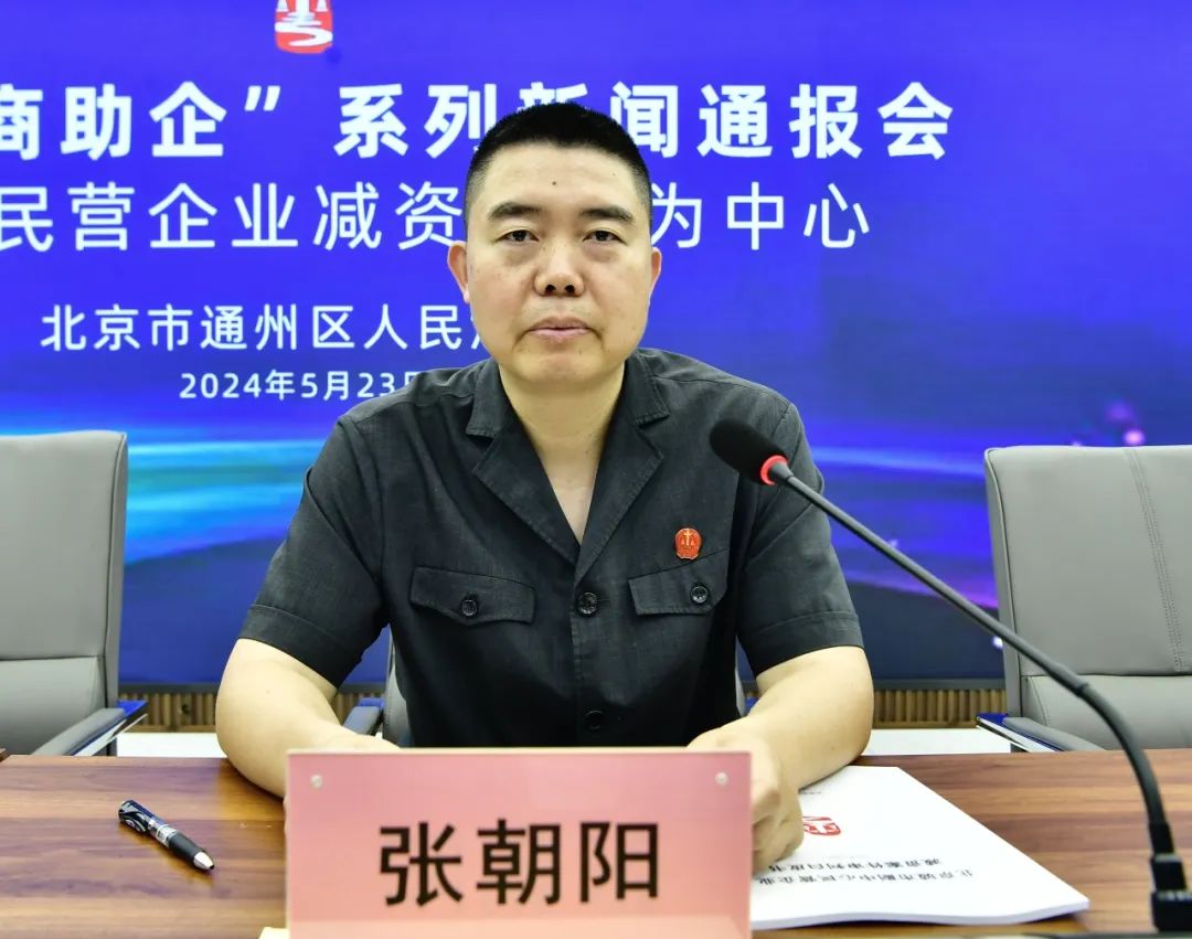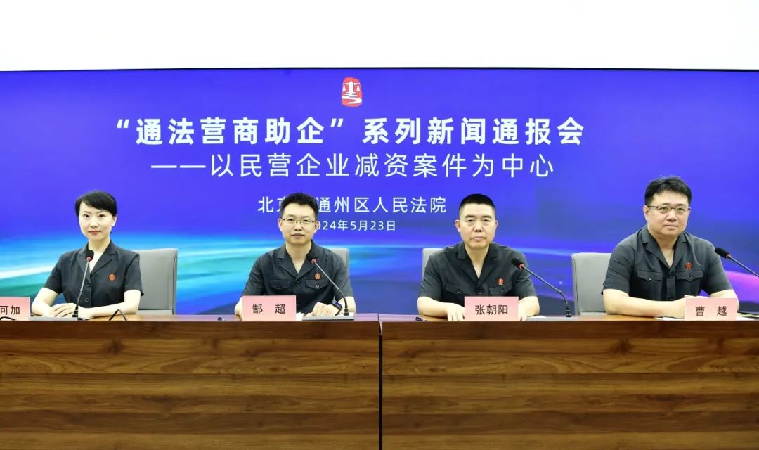 为推动民营企业健康、有序发展,2024年5月23日,通州法院举行“通法营商助企”系列新闻通报会第一场,聚焦民营企业减资案件,发布《北京城市副中心民营企业减资案件审判白皮书(2016-2023)》,以司法“实举措”,助力优化营商“大环境”。本次通报会由通州法院政治部主任郜超主持,党组成员、副院长张朝阳,民二庭庭长曹越和副庭长吴可加出席通报会。