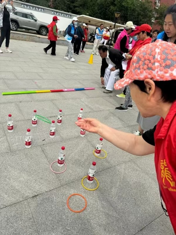 回龙观街道龙乡社区在文化活动广场组织了一场热闹的社区趣味运动会,100余名社区居民踊跃报名参与。本次趣味运动会锻炼与娱乐并重,活动设置了一人夹球跳、一米套圈、趣味踢毽、吹气球、水上乒乓球、接力传球等环节。活动现场,大家精神抖擞、全力以赴,呐喊声、加油声不绝于耳。整个运动会气氛热烈,每个人都沉浸在欢声笑语中。