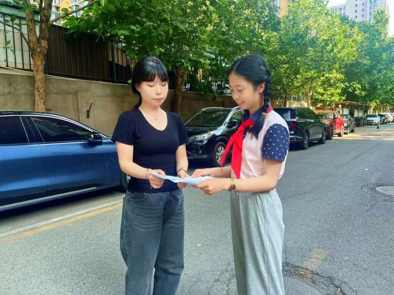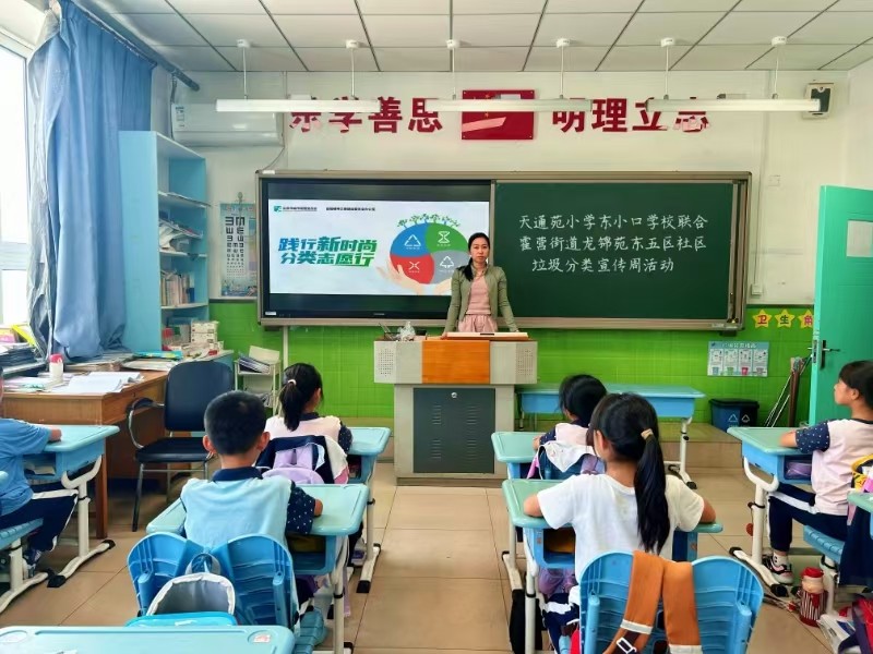 “分类进万家”活动中,天通苑小学东小口学校的孩子们组成小队,手持自制的垃圾分类环保礼品和宣传资料,走进社区,热情地向居民们讲解垃圾分类的知识和垃圾分类宣传周的主题活动,让居民更好地理解和接受垃圾分类的理念。