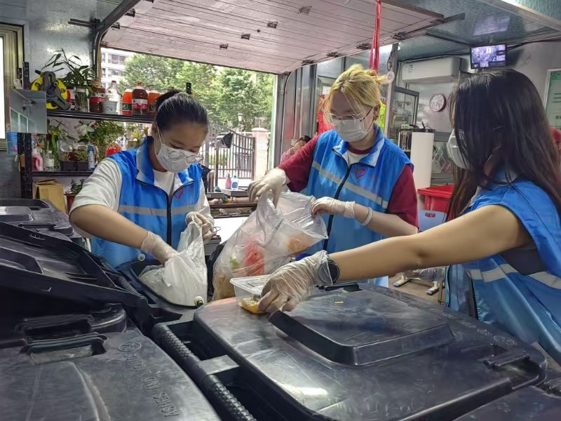 此外,青年志愿者们还来到社区垃圾驿站,进行桶前值守志愿服务,帮助居民进行生活垃圾投放,并对分类有误的居民进行现场指导分类,带动居民加入垃圾分类、垃圾减量的“绿色队伍”中来,践行“零废弃”理念,为城市环保助力。