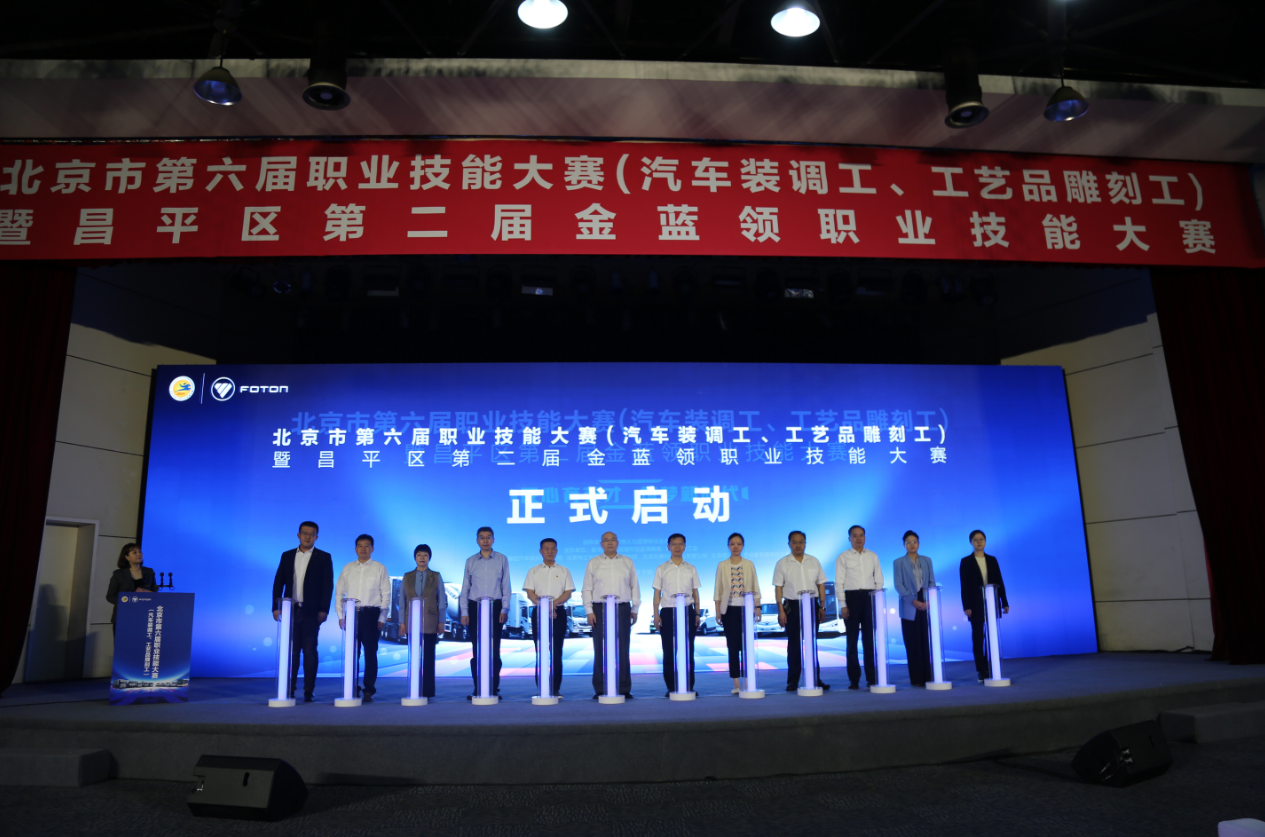 5月25日,北京市第六届职业技能大赛(汽车装调工、工艺品雕刻工)暨昌平区第二届金蓝领职业技能大赛启动仪式在北汽福田举行。
