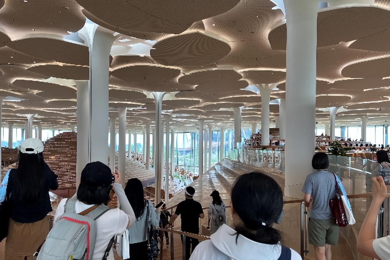 随后,大家随于润东一同移步至北京城市图书馆,置身于银杏树林之下,漫步在书籍山谷间,于润东为大家解释了建筑设计师蕴含在内的巧思,这座知识殿堂里别具匠心的空间设计既体现了中国文化的传统韵味,同时又不失人性化的现代感。巨大的玻璃幕墙引入自然光,与周边的绿色景观相得益彰,为读者营造了一个舒适、静谧的学习与阅读环境。于润东还结合讲解内容与青少年们互动,现场气氛十分热烈。