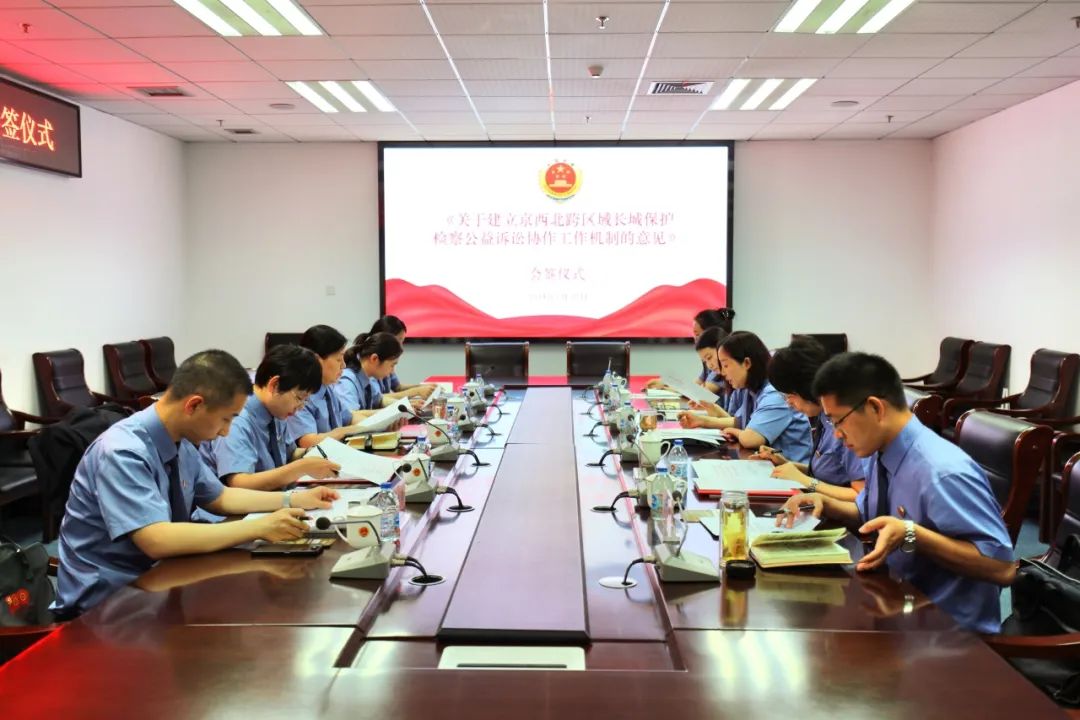 为深入贯彻习近平总书记关于长城保护的重要论述和指示批示精神,深入推进“长城保护公益行动”专项部署,进一步加强京津冀跨区域长城保护工作,近日,北京市昌平区、门头沟区、延庆区和河北省张家口市等四地检察机关,共同签署《关于建立京西北跨区域长城保护检察公益诉讼工作机制的意见》(以下简称《意见》)。《意见》共十二条,明确四地检察机关遵循协作配合、优势互补、信息共享、务求实效四项原则,建立健全管辖协作、线索移送、联合办案、会商、四地联络五大机制,深化跨区域长城保护检察公益诉讼协作。