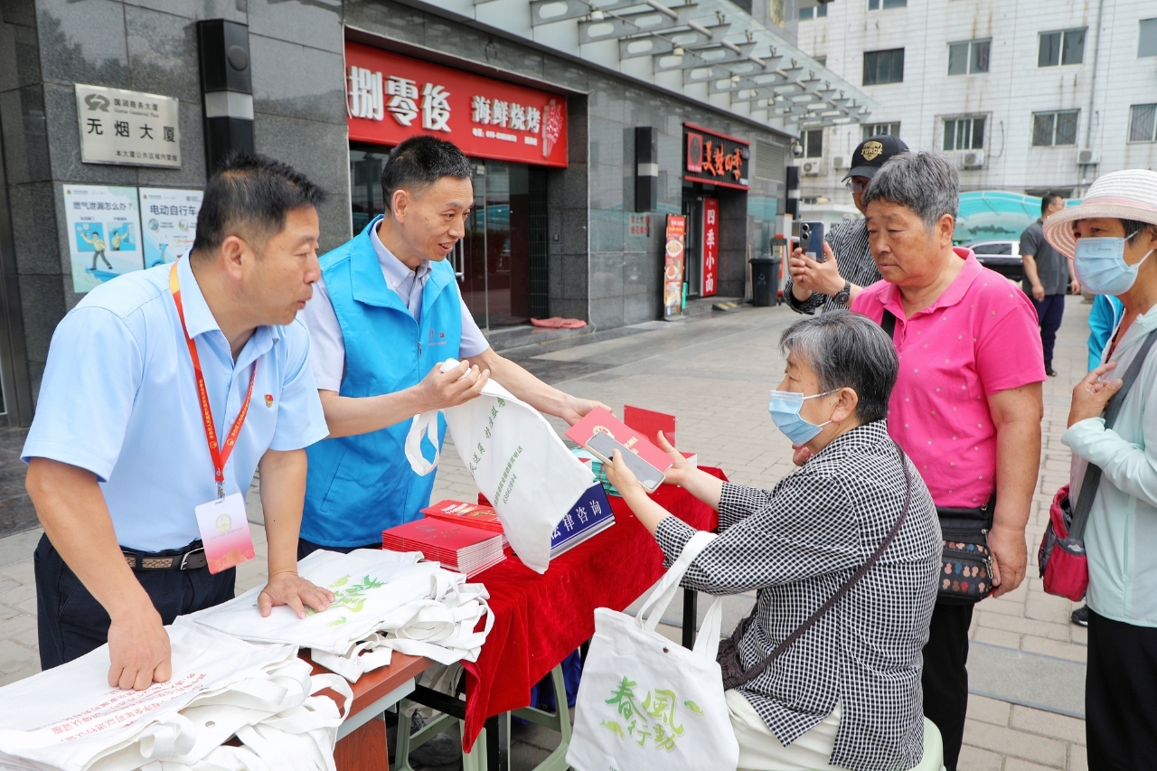 现场,工作人员向辖区居民群众、企业代表发放各类法治宣传册及宣传品,重点宣传“平等、自愿、公平、诚信、绿色”等民事活动基本原则和坚持主体平等、保护财产权利、便利交易流转、追究侵权责任等优化法治化营商环境相关法律法规政策。在街道各部门提供法治宣传、行政执法宣传、反电信诈骗宣传、社保政策咨询解答、职工权益解读等服务的基础上,还邀请到北京市常鸿律师事务所、万子健检测技术(北京)有限公司、北京中科德贤技术有限公司、杭州银行等企业,提供司法鉴定咨询、金融反诈提示等服务。