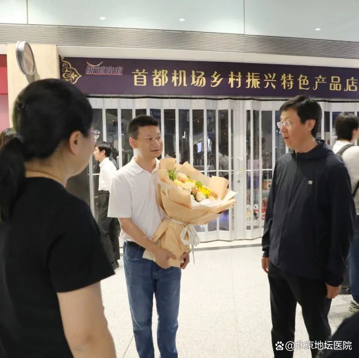 5月26日傍晚,首都机场人声鼎沸。北京地坛医院党委书记潘峰、心内科副主任管浩、心内科党支部负责人孙颖娜以及援疆家属等翘首以盼,在此迎接圆满完成一年援疆任务的地坛医院心内科医生魏望江。“辛苦了!”潘峰书记怀抱鲜花,快步上前亲切慰问援疆同志。一年前,魏望江作为第十一批援疆医疗队员,远赴新疆和田,挂职和田地区传染病专科医院综合内科主任,如今,他已圆满医疗援助工作,载誉而归。
