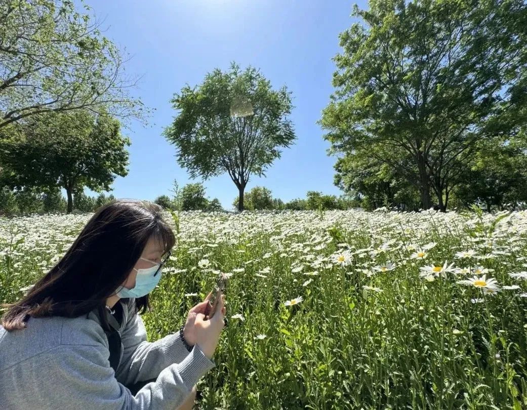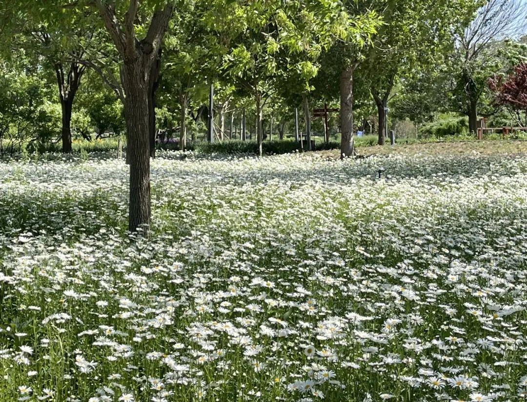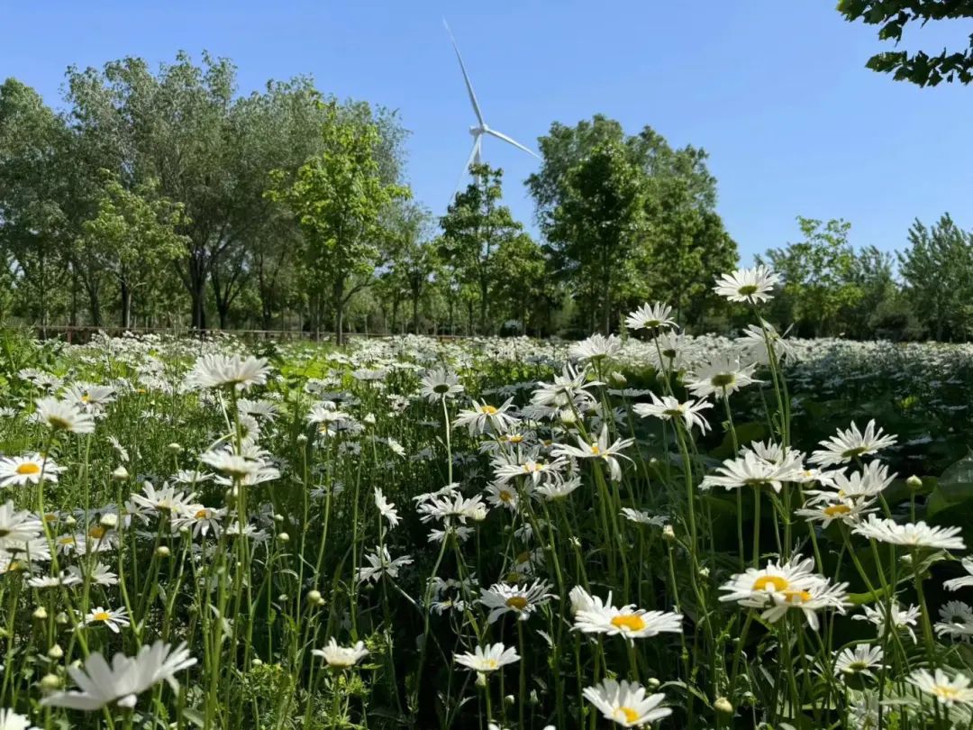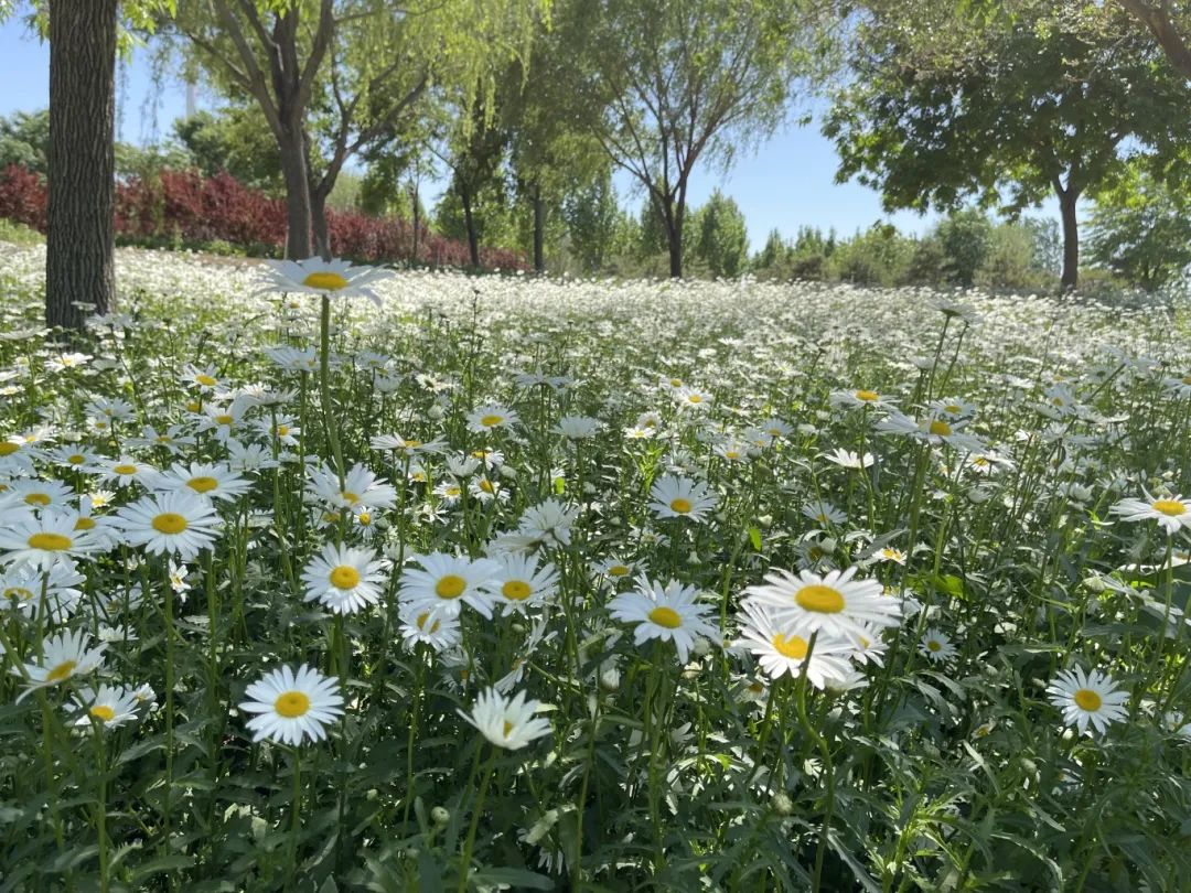 在亦庄新城滨河公园,成片的大滨菊盛开,朵朵洁白、素雅的小花,清新、浪漫又美好。尤其是在夏日的阳光与微风下,“治愈度”拉满。