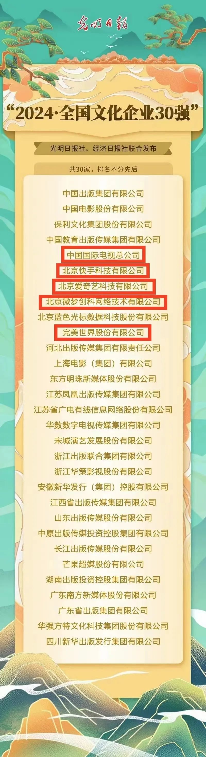 “2024·全国文化企业30强”名单