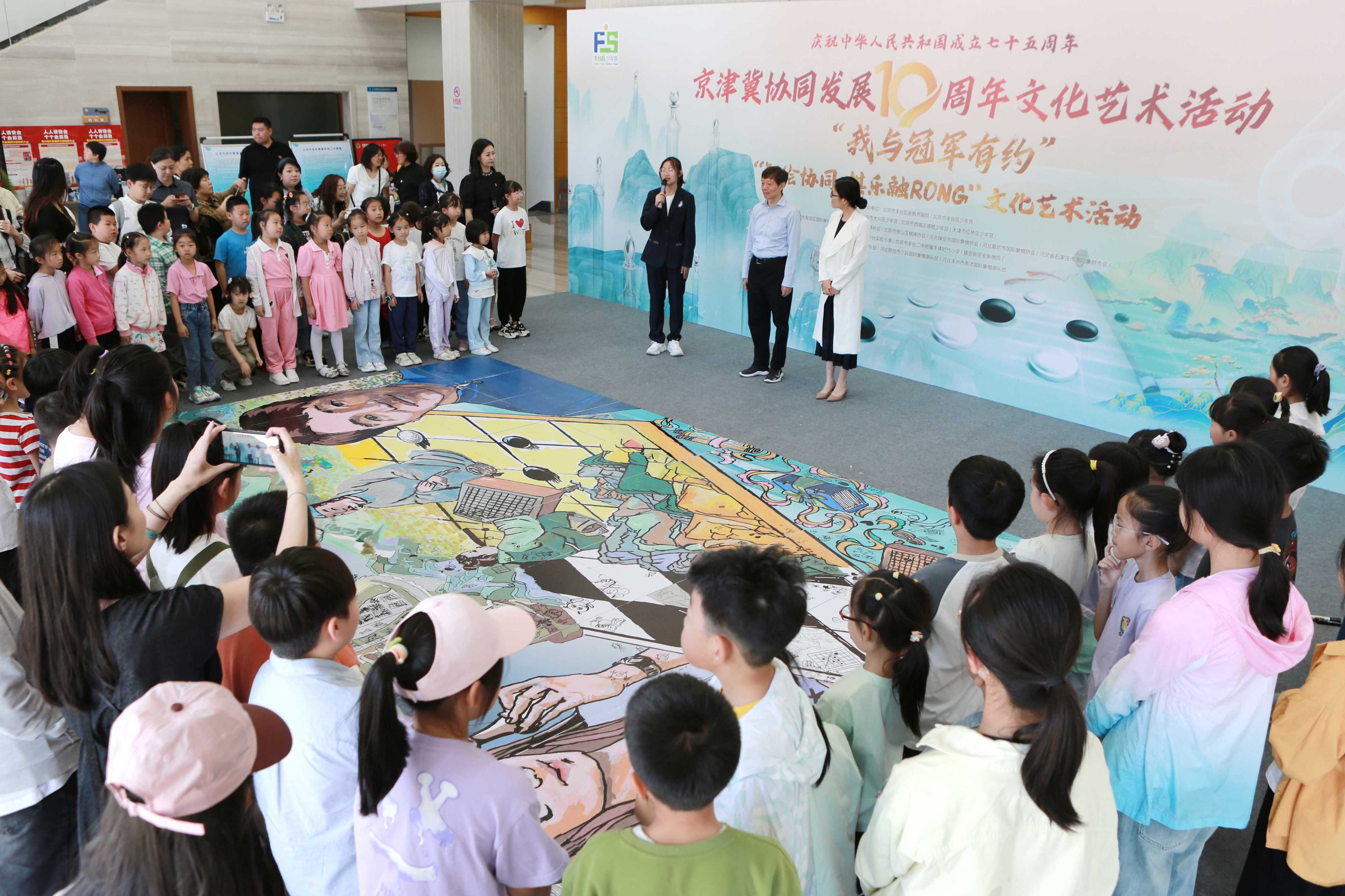 国际象棋女子世界冠军侯逸凡、围棋职业八段方天丰二位特邀嘉宾以及来自京津冀三地的五百余名棋类和美术专业学生代表、教师、家长齐聚丰台区少年宫西校区,与线上同步参与活动的两千余名观众一起,共享文化艺术之美,同庆协同发展十周年。