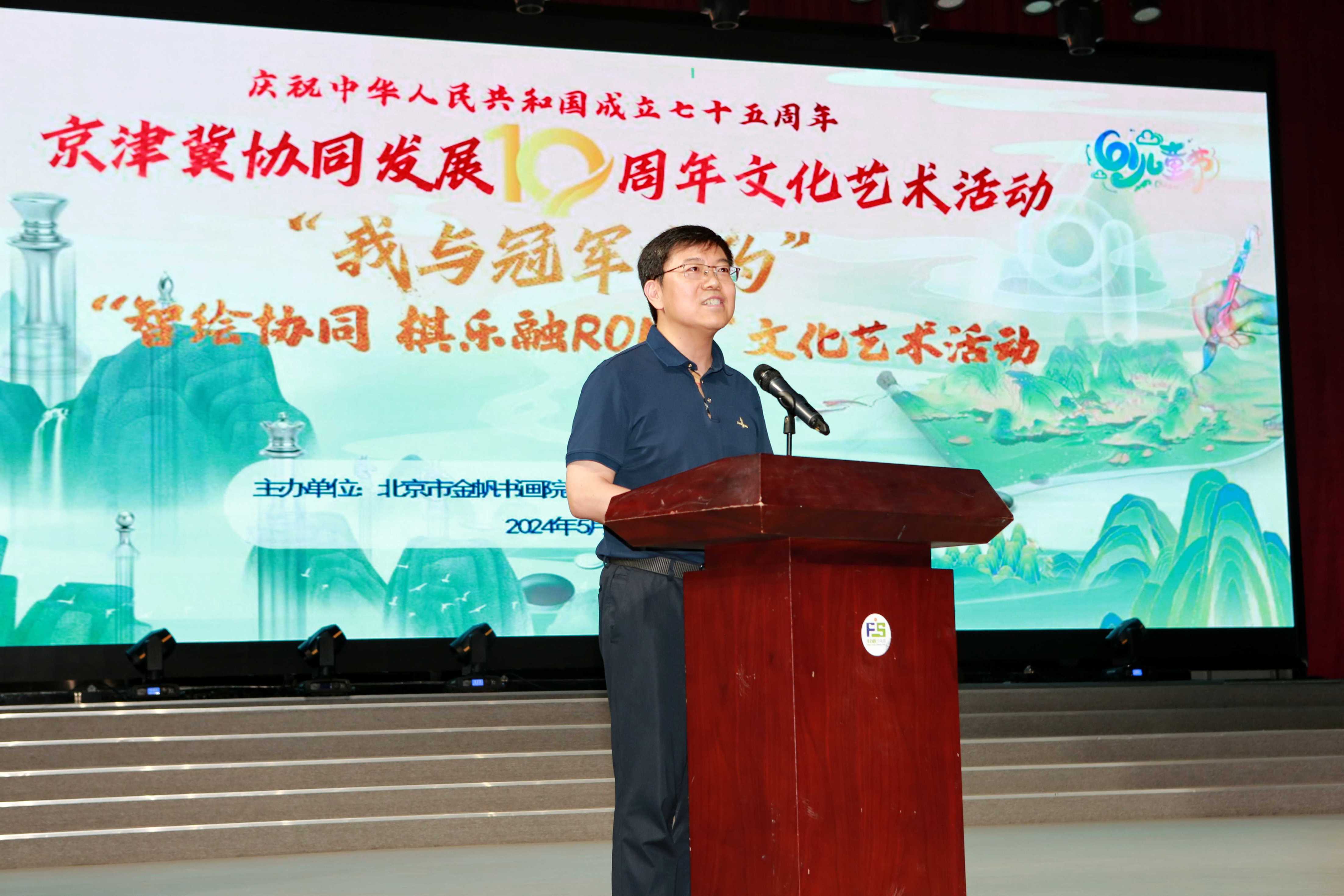 为庆祝新中国成立七十五周年及京津冀协同发展战略实施十周年,在“六一”国际儿童节来临之际,5月26日,由北京市金帆书画院丰台分院、北京市丰台区少年宫主办的京津冀协同发展10周年文化艺术活动暨京津冀联动“我与冠军有约”“智绘协同 棋乐融RONG”文化艺术活动成功举办。