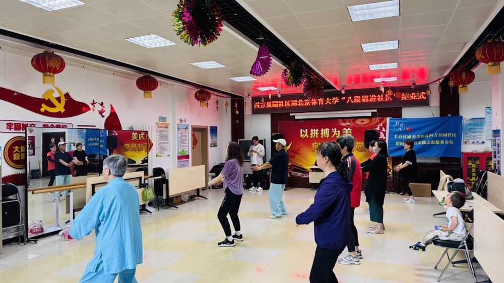 为了增进社区居民的身体素质,推广传统健身功法,让居民感受中华传统文化的魅力,成寿寺街道四方景园社区邀请了北京体育大学杨玉冰博士和薛文传博士,共开展了五次八段锦进社区活动。