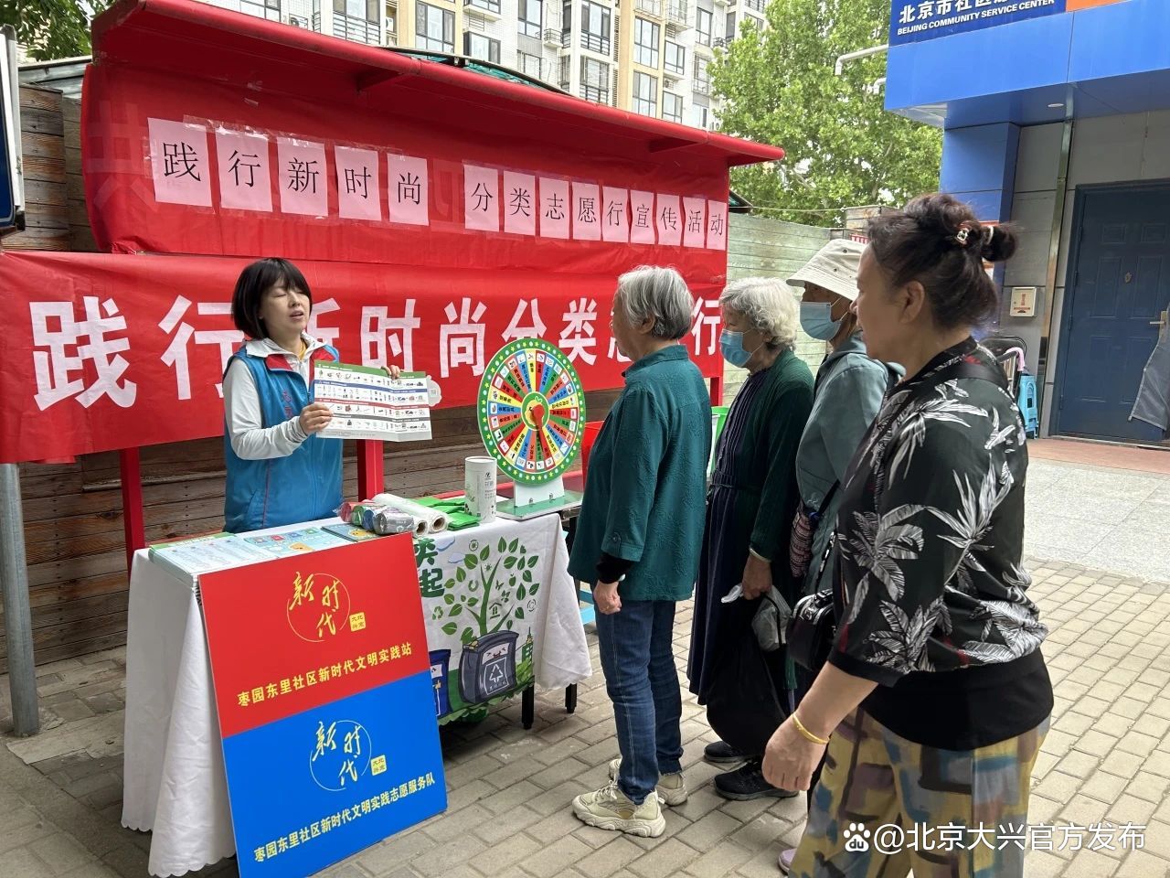 工作人员通过发放宣传页,向居民普及垃圾分类的相关知识,倡导大家在日常生活中注重垃圾分类,以实现低碳绿色的生活方式。
