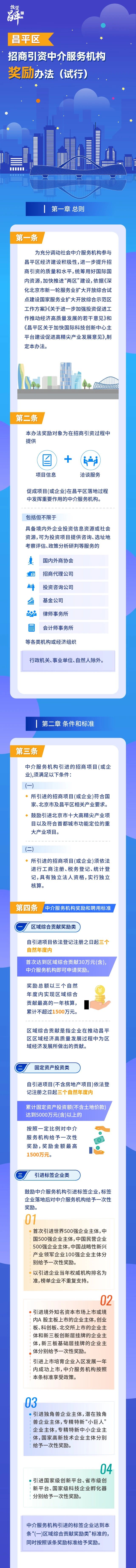 为积极响应国家及北京市关于服务业扩大开放和综合示范区建设的要求,我区近日正式发布了《昌平区招商引资中介服务机构奖励办法(试行)》(以下简称《办法》)。进一步激发社会中介服务机构参与昌平区经济建设的积极性,提升招商引资的质量和水平,加快推进“两区”建设。