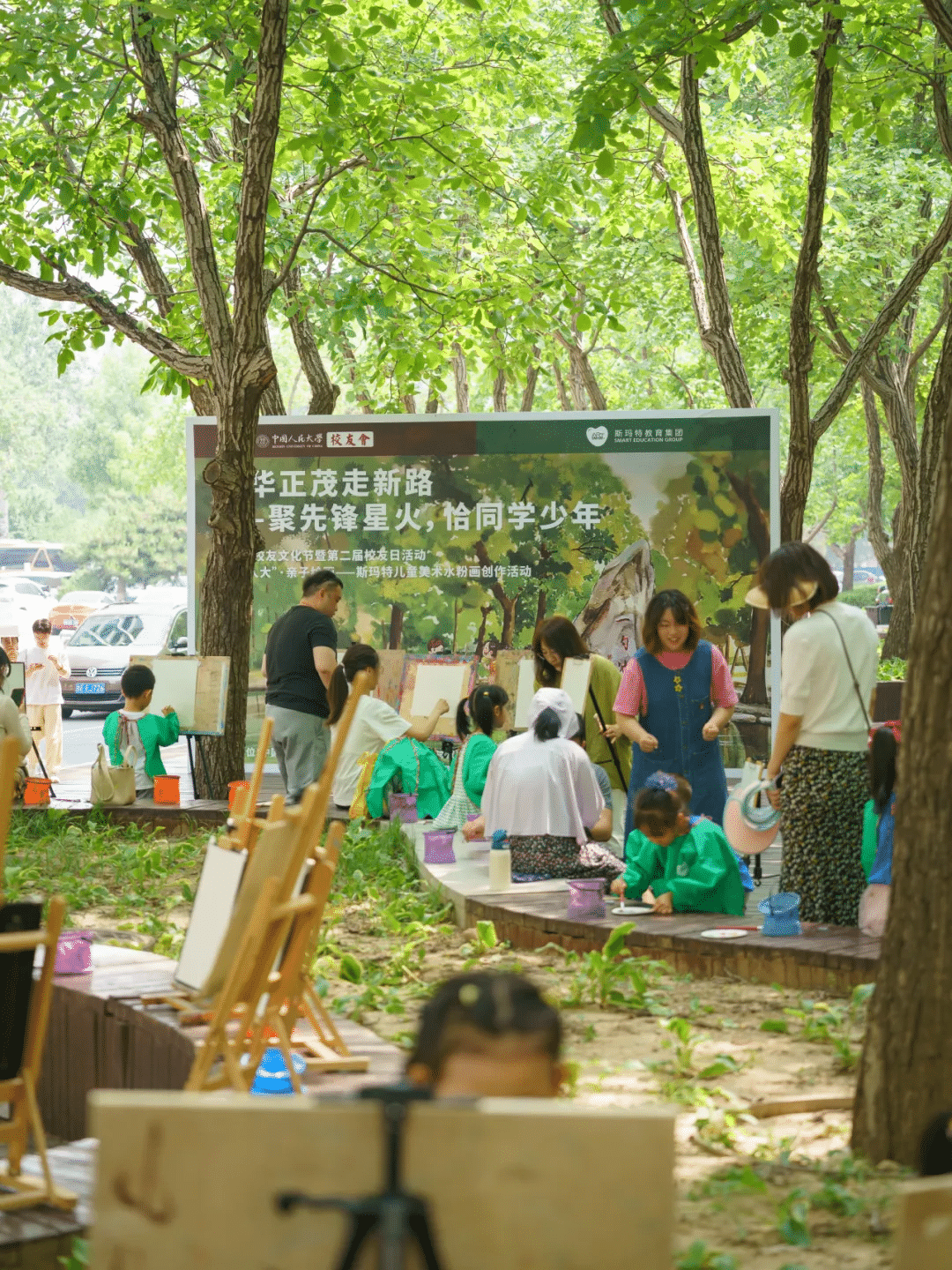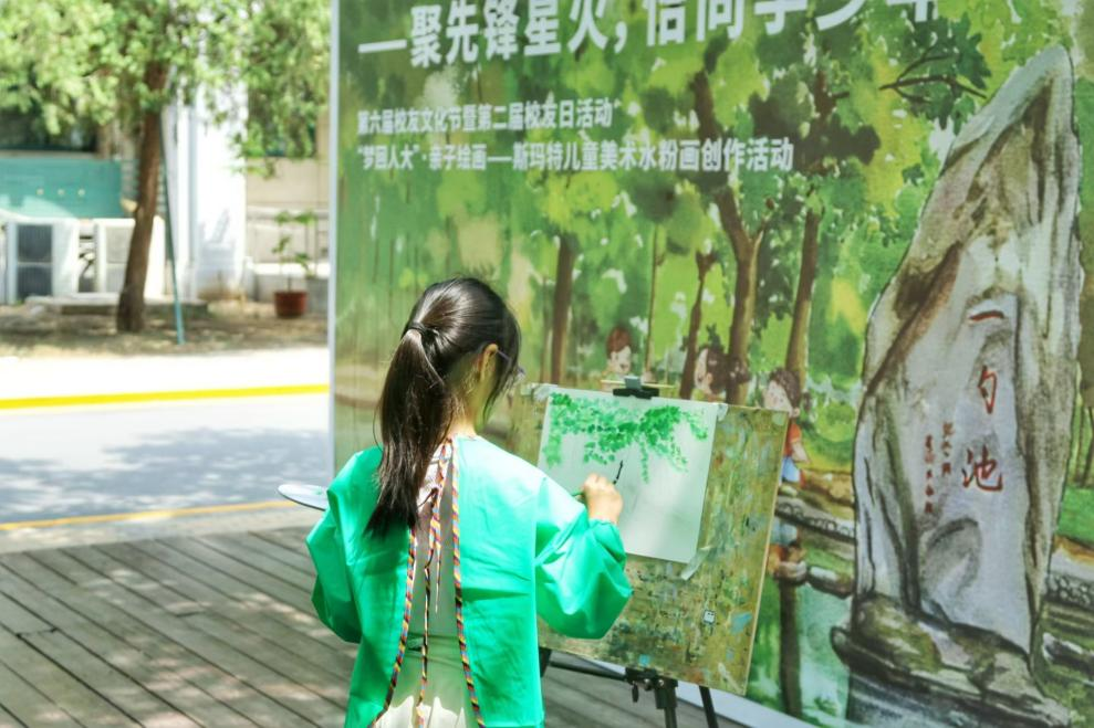 活动现场,斯玛特举办“梦回人大”,儿童美术水粉画亲子绘画创作活动,来自海内外毕业的上百校友们一起在校园里,和孩子们一起画下美好的回忆,创作更加美好的未来。斯玛特还邀请家长和孩子们共绘艺术细胞,并用上百幅孩子们绘制的六边形画板,组成了我爱人大的创意拼图,最后将画面安装在艺术细胞画框内,并进行拼接制作,赠送给校园进行纪念收藏和展示。