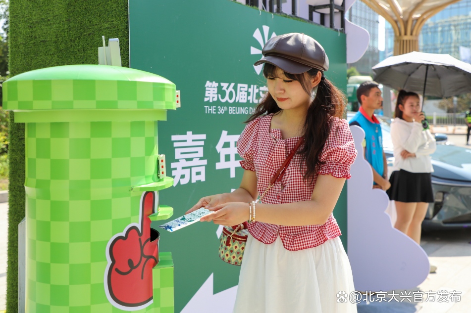 为了让喜欢西瓜文化的朋友留下美好的记忆,嘉年华现场还设置了邮政花车,寄一封来自大兴西瓜节的情书,打印一张西瓜节的明信片,盖上纪念戳,把一份“瓜甜”满满的祝福,送给远方的那个他。