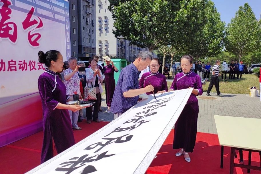 随后,中国老年书画研究会的张玉民老师现场挥毫泼墨,书写了“古镇新居,宜居长馨”社区党建品牌宣传语,这寓意着传承长辛店古镇团结友爱的邻里精神,同时也是对社区美好未来的祝愿。