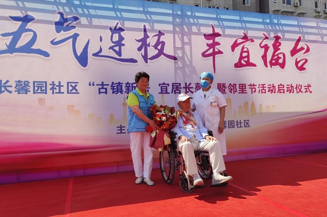 邻里节活动以表彰两位退役老兵焦永安和李庭元为起始,感谢他们为祖国做出的贡献,“健康管家”代表夏彦萍和“健康管家”顾问长城医院赵淑荣大夫为他们送上了鲜花和健康的祝福。