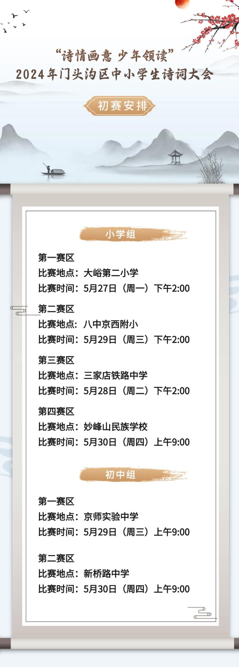 5月29日,2024年门头沟区中小学生诗词大会初赛再掀热潮。小学组第三场比赛在北京八中京西附小顺利开展,初中组第一场比赛在京师实验中学精彩启幕。