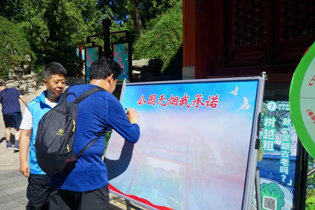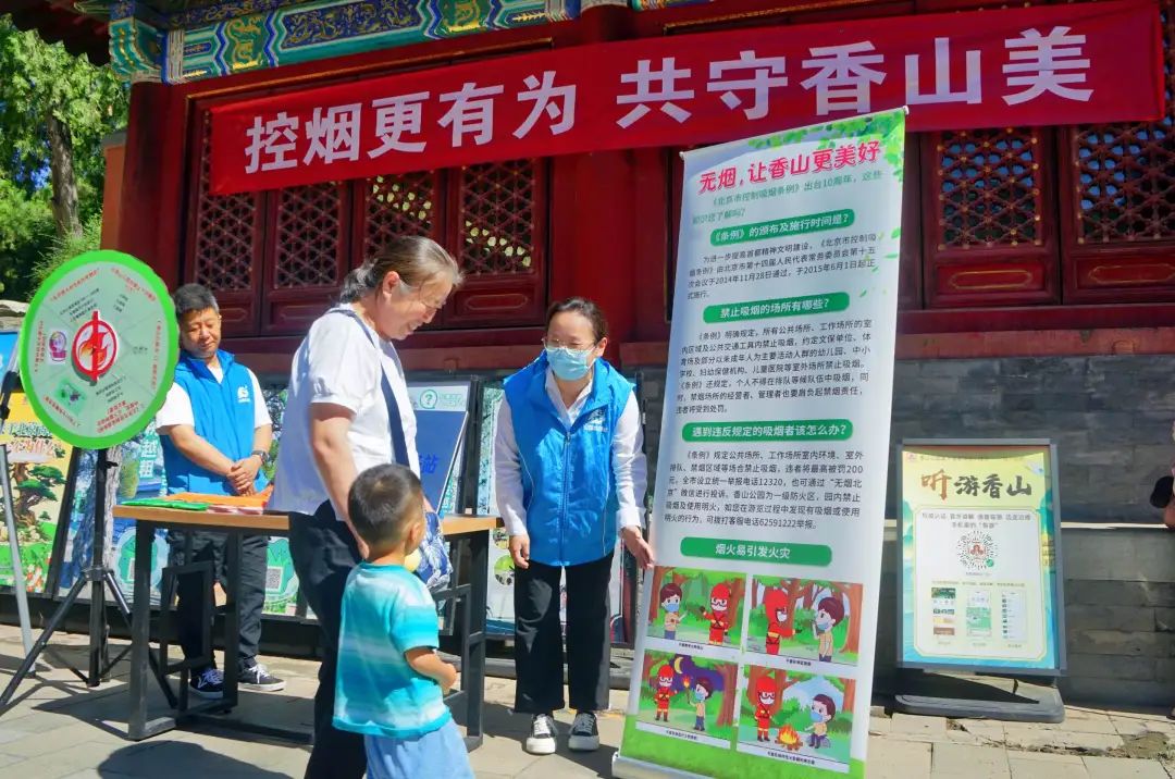 今日,香山公园以“控烟更有为 共守香山美”为主题,在游客服务中心门前开展文明游园宣传引导活动。