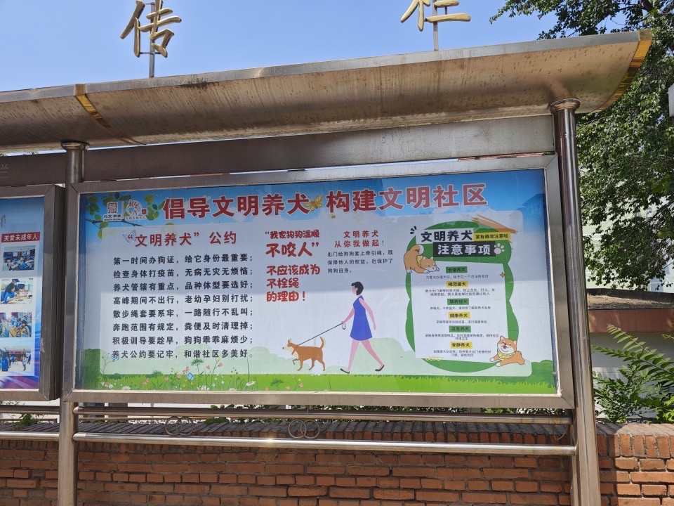 “开辟一处阵地”。各社区、村以新时代文明实践站为主阵地,开展讲座类室内活动;在社区宣传栏、电子显示屏等宣传阵地定期更新文明养犬相关知识、政策法规和社区动态,为居民提供便捷的信息获取渠道;设置“文明养犬”公益广告、宣传标语提示牌等150余处。