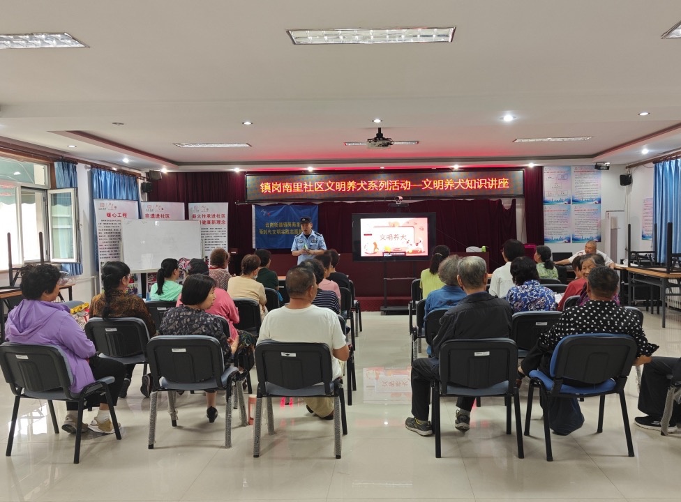 镇岗南里社区邀请社区民警为居民开展文明养犬知识讲座