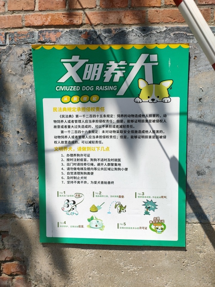 “开展一次活动”。各社区、村坚持党建引领,邀请社区民警共同开展文明养犬宣传活动,目前已开展13场。后续还将组织文明养犬标兵推荐、“我承诺、我践行”文明养犬签名行动等活动,以居民喜闻乐见的形式激发参与热情,重点宣传文明养犬知识、相关法律法规和社区养犬规定,增强居民的法治意识和文明素养。