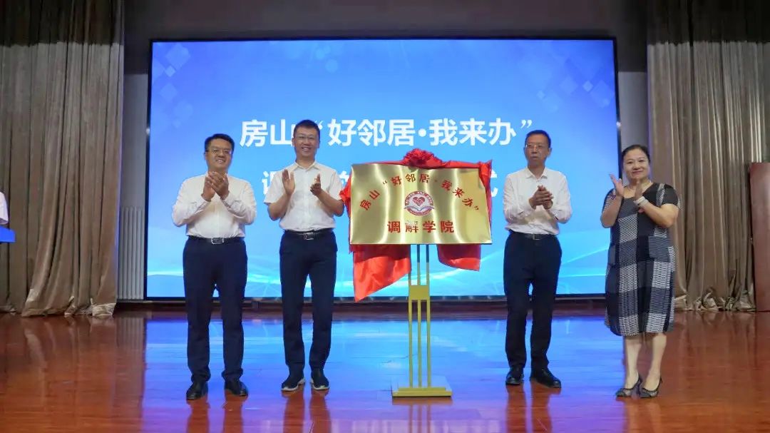 5月27日,区委政法委、区司法局、北京开放大学房山分校联合打造的全市首家区级调解学院——房山“好邻居·我来办”调解学院揭牌。