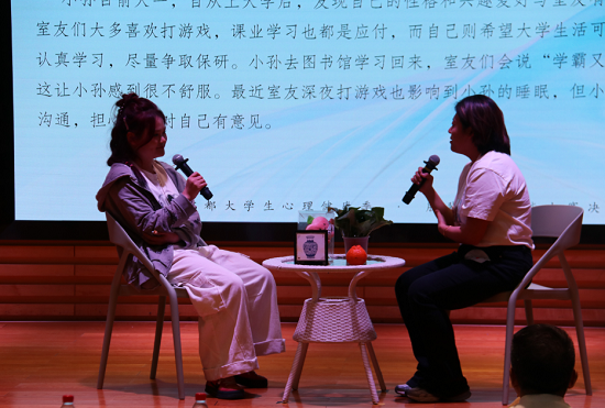比赛过程中,安伊宁以“生涯适应力”为主题,解决“大学生遇到调剂专业应该如何做”的实际问题为目的,展开心理科普讲解。通过结合朋辈班主任工作中真实遇到的实例,为更多大学生们答疑解惑。