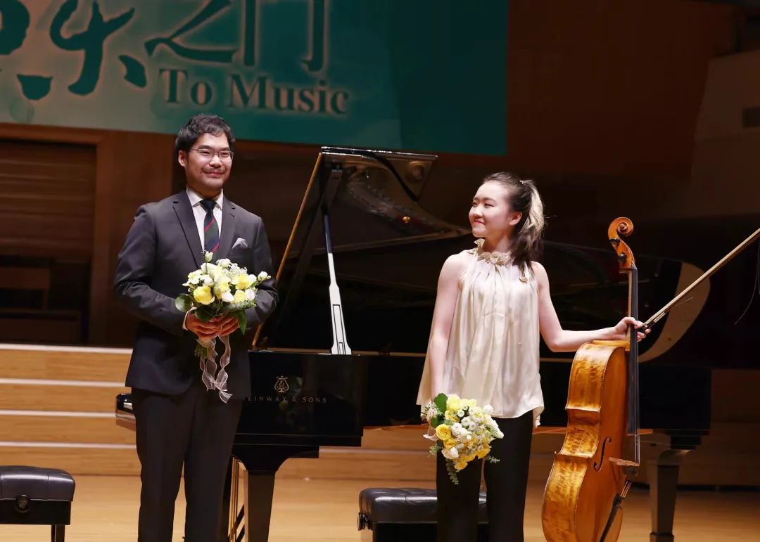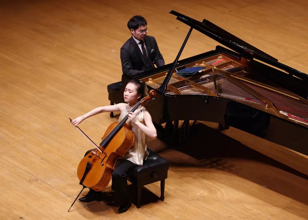 两位“年轻小将”音乐中的热情点燃了听众,在观众的热情欢呼下,二人返场演奏了波普尔的《精灵之舞》。快速活泼的“精灵”旋律让听众从下半场的“晚期风格”中脱离出来,转而意识到舞台上的这位青年演奏家是一位活泼的00后,似乎活力四射才是这个年纪应该有的特点,徐暄涵右手快速而利落的运弓让人仿佛看见了一位在弓弦上翩翩起舞的精灵。