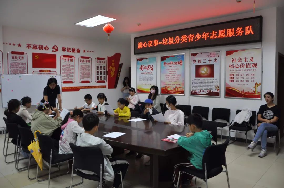瑞旗家园一区社区邀请青少年志愿者开展“旗心议事”,就小区里垃圾分类的大事小情展开讨论,孩子们认认真真思考、商讨、做笔记的模样,令现场社区工作人员为之感动。