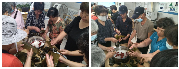 活动开始前,驿站工作人员先向大家介绍了端午节的起源和包粽子的技巧。大家听得津津有味,不时发出阵阵惊叹声。随后,大家纷纷动手开始包粽子。只见粽叶在大家的巧手中翻飞,糯米和馅料被巧妙地包裹在粽叶里,形成一个个形状各异的粽子。在包粽子的过程中,大家互相交流着包粽子的心得和经验,不时传来欢声笑语。经过一番努力,大家终于完成了粽子的制作。