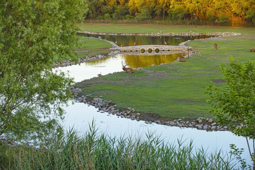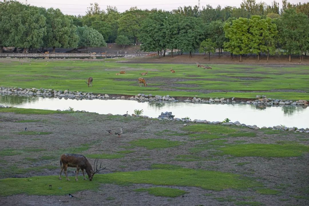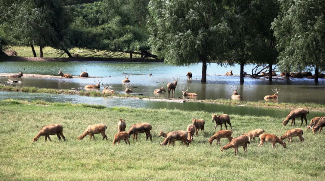 这里草木茂盛、遍地野趣,一条清澈的河蜿蜒于南海子麋鹿苑中,6月的阳光洒在水面,像碎银子反射出亮闪闪的光。