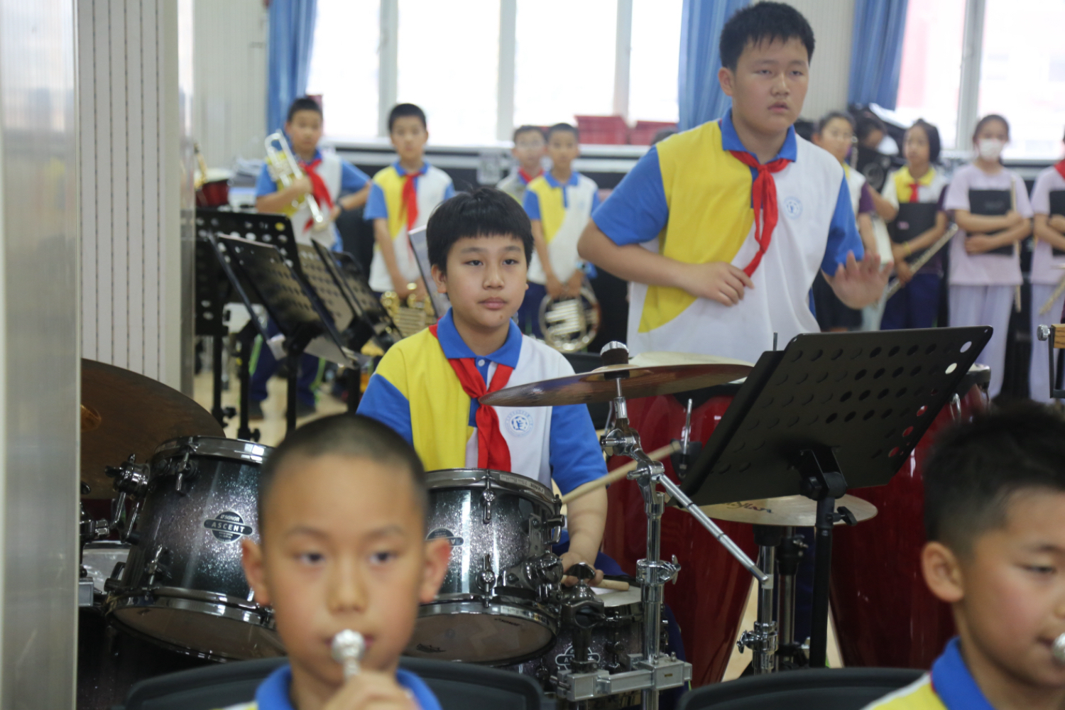 乐团孩子们赛前在老师的指导下进行了集训,比赛中,他们精彩的演出,每一个细节都能看出他们平时坚持练习的“功底”之扎实。
