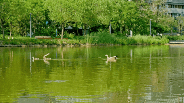 “原来的几只长大了,又生了鸭宝宝,变成了现在的一群。有时候不知道飞去哪了,又会再飞回来,反正来去自由吧!”公园的工作人员分享着点滴变化。