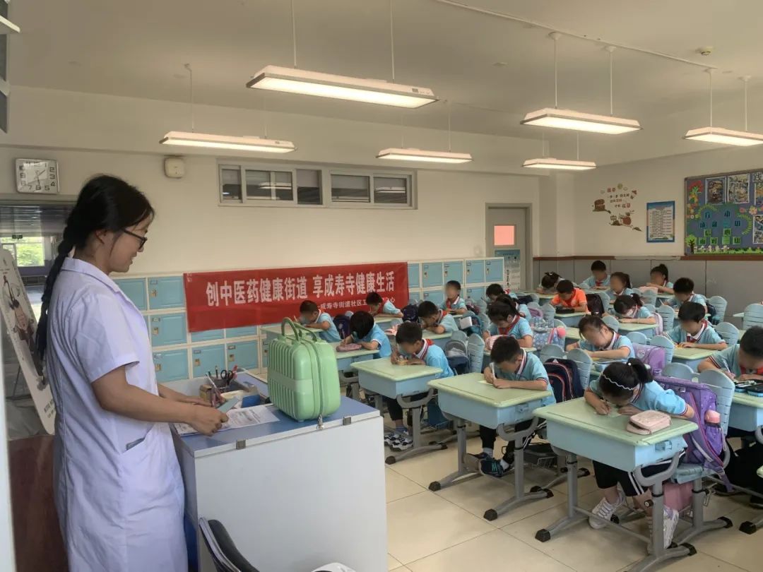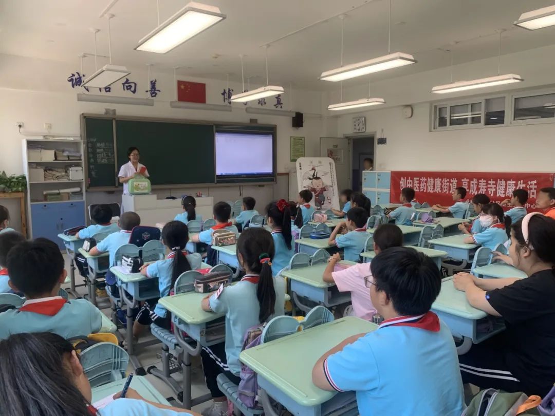 为深入实施健康中国战略,增进青少年儿童对中医传统文化的认知,提升青少年儿童健康素养和健康水平,在“六一”儿童节来临之际,5月30日,成寿寺街道社区卫生服务中心“健康副校长”谷玉红及10余位医务人员一起走进辖区成寿寺小学,举办了一场“弘扬传统文化 传承中医智慧——北京中医药健康文化体验馆儿童节活动”,与160名小学生一起参加了一场奇妙的“中医药快乐之旅”。