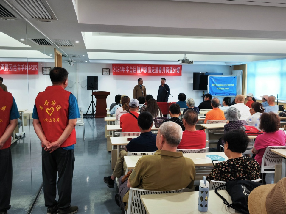为进一步丰富辖区居民的文化生活,近日,丰台区文旅局、文化馆组织的“2024年丰台区相声演出走进看丹街道分馆”活动成功举办,观众们在热烈的气氛中尽情享受了一场充满欢笑的相声演出。