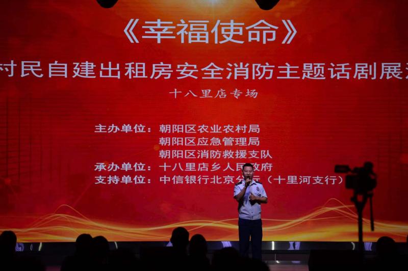 6月14日,朝阳区主导创作的村民自建出租房安全消防主题话剧《幸福使命》,在十八里店乡周庄村举行首演。