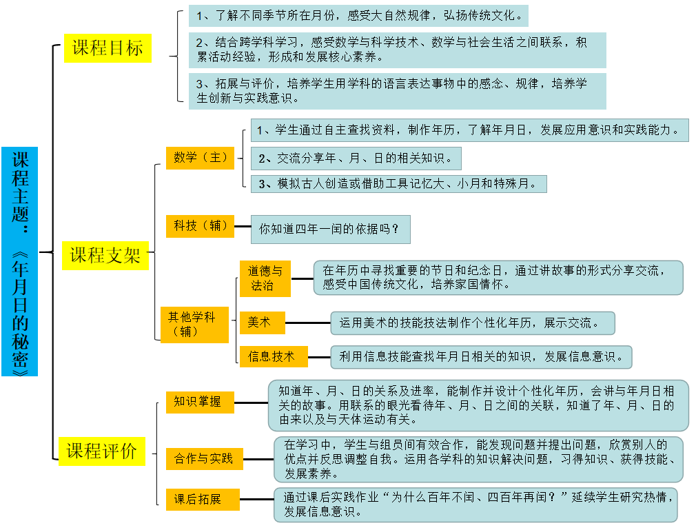 三年级组以数学《年月日》单元为主要研究内容,在整合数学、科学、道德与法治、美术、信息科技等学科内容中,通过采取跨学科教学方式,帮助学生理解数学知识,发展应用意识、信息意识和科学观念等素养。