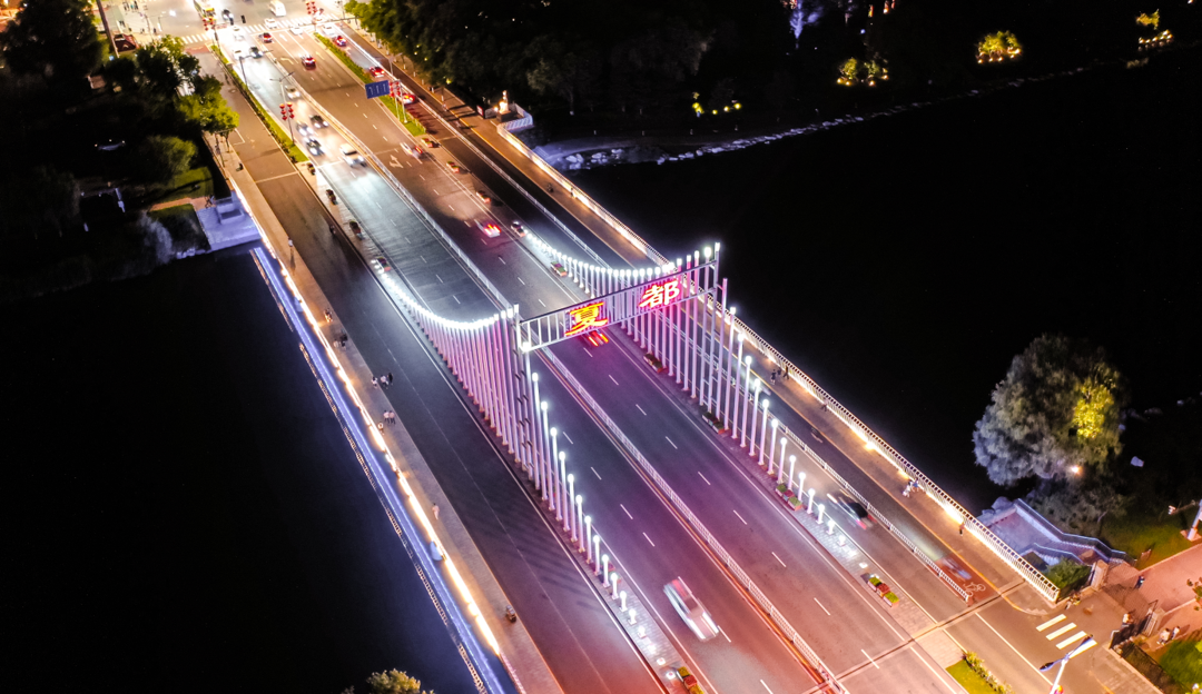 路灯照亮夏花,最美冬奥城里光影闪烁,夜色浪漫。