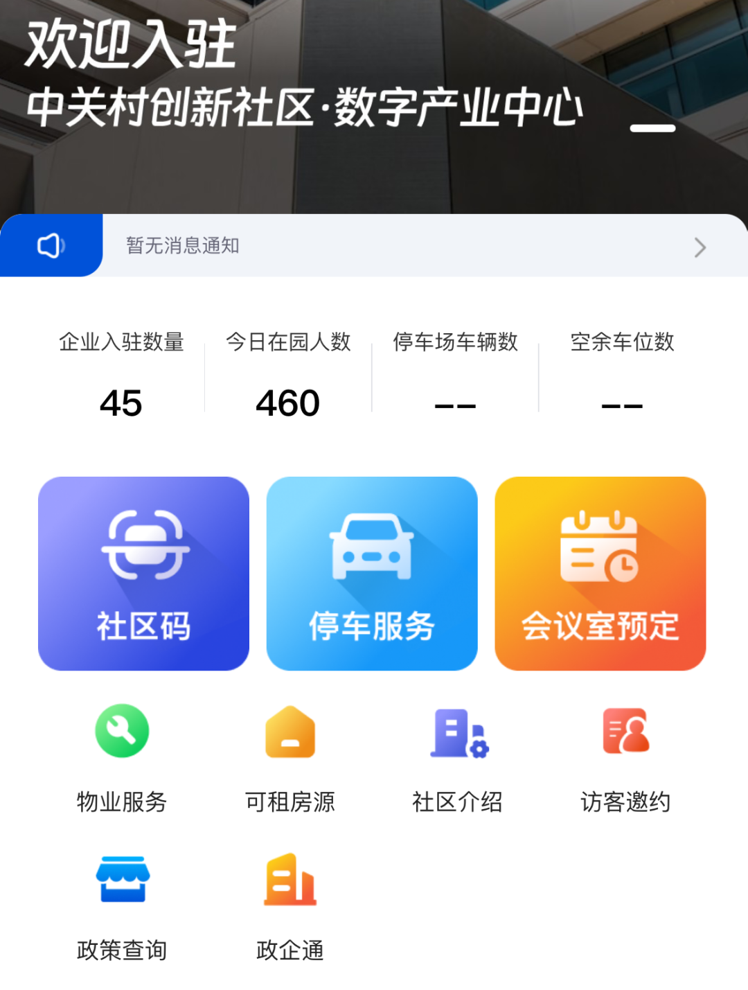 数字产业创新中心还开发了专属线上小程序,集成社区码、访客预约、科技服务、政策集锦、智慧停车等功能,打造真正线下、线上相协同的“云社区”,创造智慧、高效、协同的办公场景。无论是企业主体还是员工个人,都可以通过社区小程序享受到数字化便捷服务。