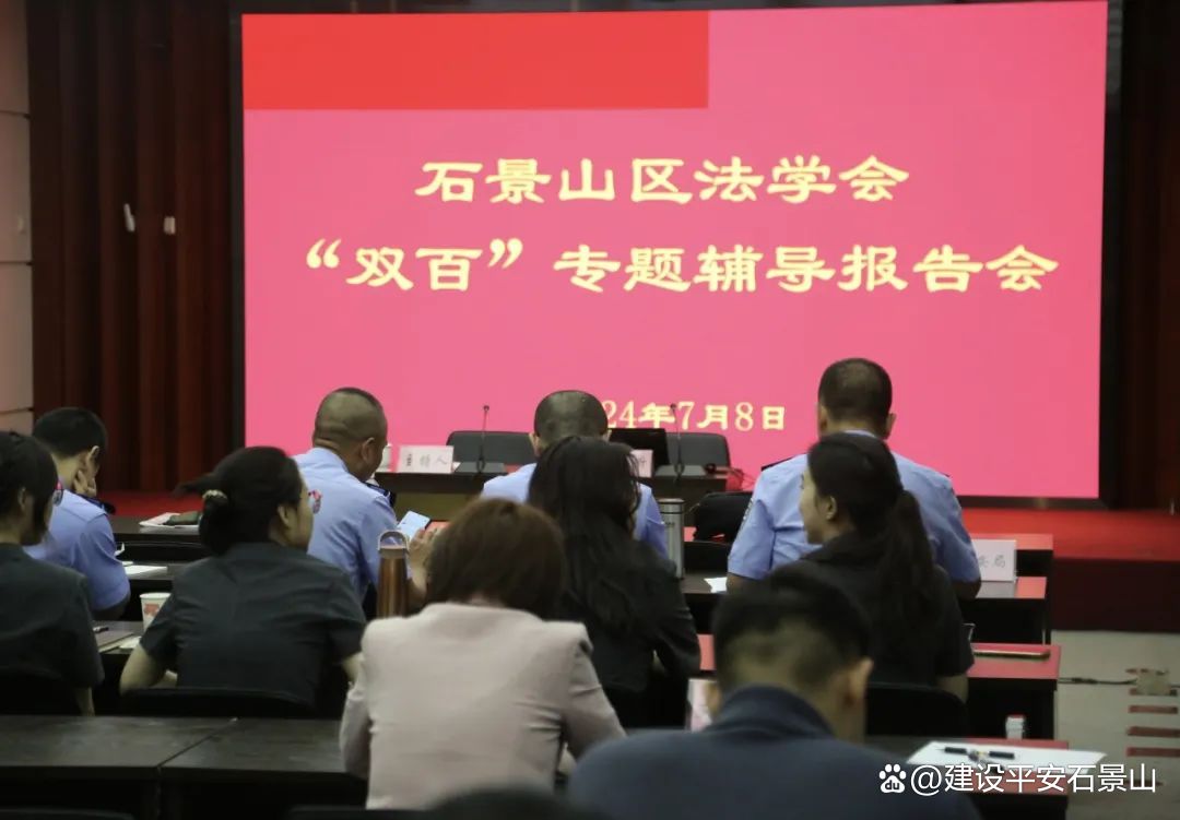 按照市法学会《关于积极组织开展“百名法学家百场报告会”活动的通知》要求及区法学会年度工作计划,7月8日上午,石景山区法学会在区法院举办“双百”专题辅导报告会。本次报告会在区法院开设1个线下主会场、5个线上分会场,区委政法委、政法各单位、各街道司法所及律师代表1000余人参加活动。
