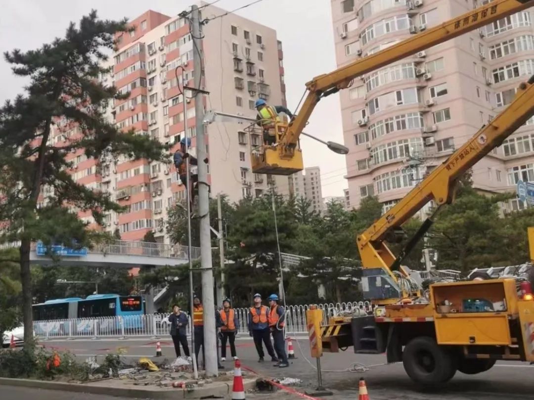 城市管理办公室立刻协调电力部门赴现场共同处置,期间,劲松街道办事处副主任王静媛到现场亲自指挥,并全程跟进此事。经过三个小时的紧急处理,工作人员成功将电线杆修复完毕,有效消除了安全隐患,保障了大家的通行。