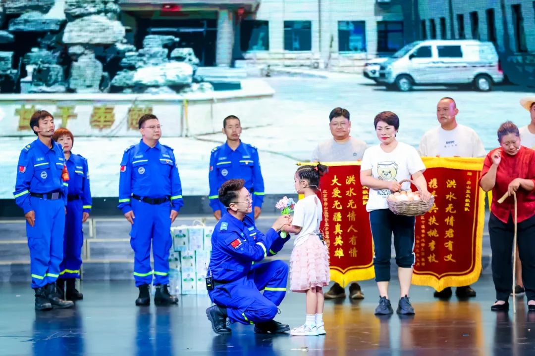 ▲房山蓝天救援队表演情景剧《风雨无阻向前进》