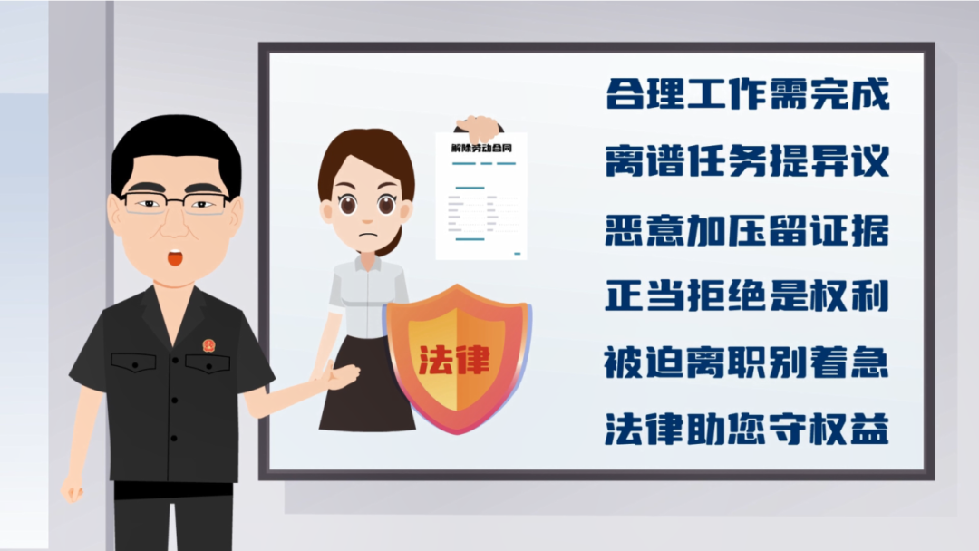 提示广大劳动者,合理工作需完成,离谱任务提异议,恶意加压留证据,正当拒绝是权利,被迫离职别着急,法律助您守权益。
