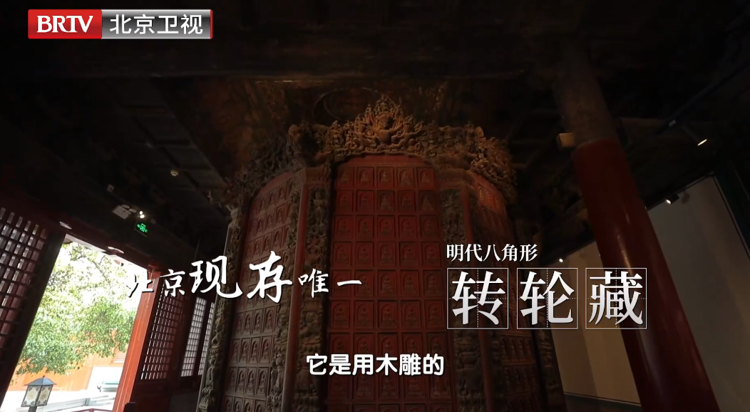 与银河SOHO对望的智化寺,位于北京市东城区,堪称京城最大、保存最完整的明代木构建筑群,是第一批全国重点文物保护单位之一,现名北京文博交流馆。馆中保存着北京现存唯一,明代八角形转轮藏,它是用金丝楠木雕制而成,上面每一个小小的抽屉里都收藏着经书,游客绕着它转一圈就相当于把这里存放的经书都诵读了一遍。
