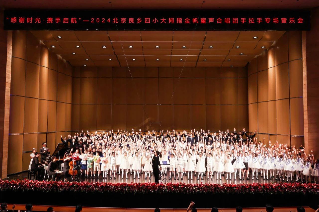 北京市房山区良乡四小大拇指金帆合唱团,不仅追求精品的艺术的引领,还充分发挥金帆团对地区美育的辐射和带动作用,每年以专场音乐会的形式分享合唱艺术的魅力。7月9日晚上,“感谢时光 携手启航”——2024北京良乡四小大拇指金帆童声合唱团手拉手专场音会在北京理工大学文博中心大剧院举行。此次专场音乐会特别邀请了房山区周口店中心小学和坐落在良乡大学城的北京理工附属实验学校、房山区良乡二中合唱团的同学和老师们共同参演。