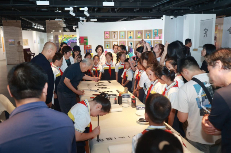 活动中,领导、嘉宾及学生代表共同为艺术展剪彩,良乡四小获赠焦秉义大师的绘画作品。在讲解员的引领下,嘉宾和观众共同参观了艺术展,嘉宾与学生现场进行书法及美术创作。
