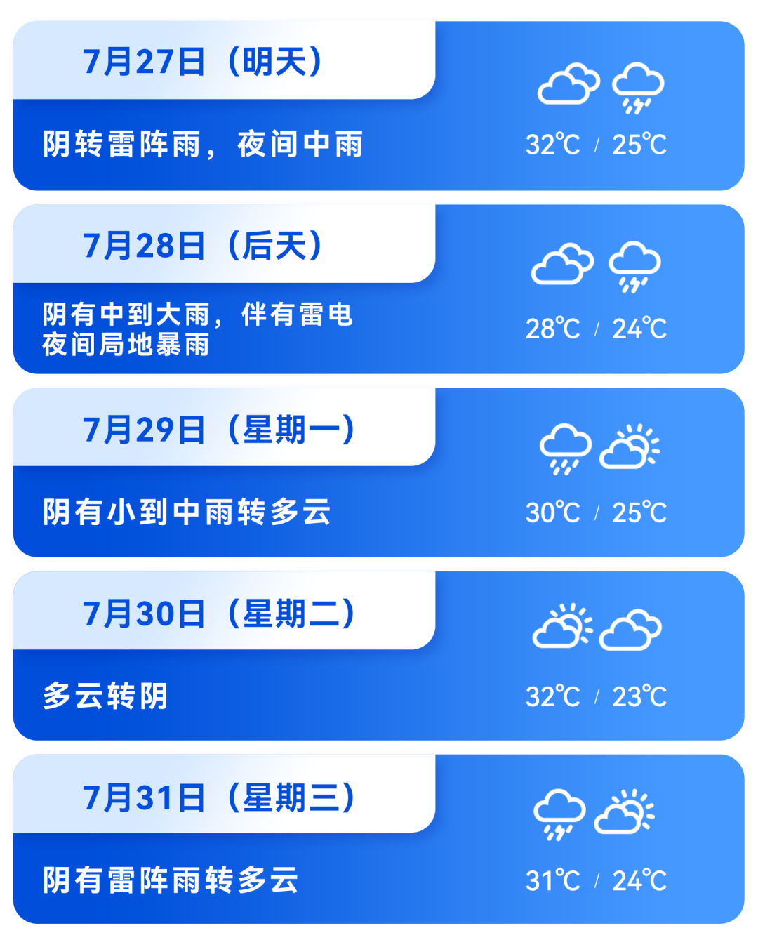 近期降雨频繁,突发性天气有所增多,请大家及时关注临近天气预报、预警信息,加强防范,注意出行安全。